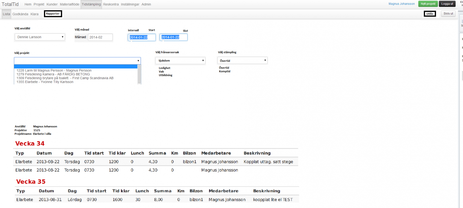 Så är det i princip idag, vi behöver bara lägga till varningen på instämplade timmar om det är under 7-8 h på en dag. Att stämpla in är ju inget måste. Du ser ju varje installatörs projekttider på varje dag.