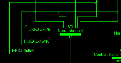 Den på bilden har jag ritat manuellt då jag inte hittade funktionen.. Men det borde väl finnas? Vore ju bra om man kunde 1: Välja kabel 2: Välja om texten ska vara horisontell eller lodrät 3: Välja var texten ska vara.