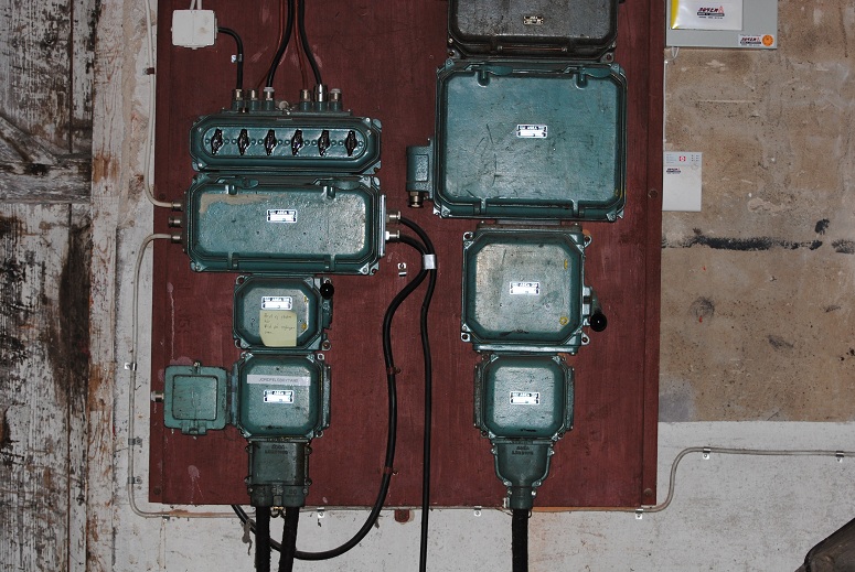 Först 1902 elektrifierades anläggningen, i början endast för belysning med båg-/ glödlampor (förmodl. 110V lik). Därefter moderniserad under hela seklet, överallt på området finns installationer från olika årtionden.