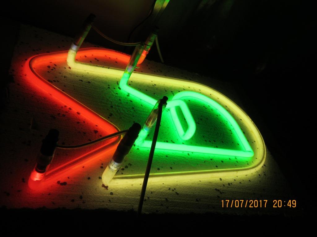 Under åren har jag slaktat några reklamskyltar med riktiga neon-rör. Nu har jag inför en stundande party kopplat ihop komponenterna.