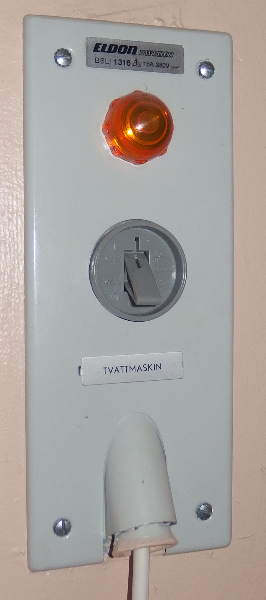 Hade jag bara sett det jordade lamputtaget men ingenting annat hade jag nog flyttat fram min gissning till mitten av 80-talet. Tvättmaskinspanelen och de bruna propphuvarna känns mer som tidigt 70-tal, men den lilla timerlådan under gruppcentralen verkar 80-talsmässig.