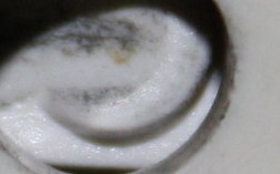 Jag tror du har rätt Patrik, det där som ser ut som något ludd, marmor eller något annat obestämbart är väl helt enkelt slitspåret efter stickpropparnas stift....
