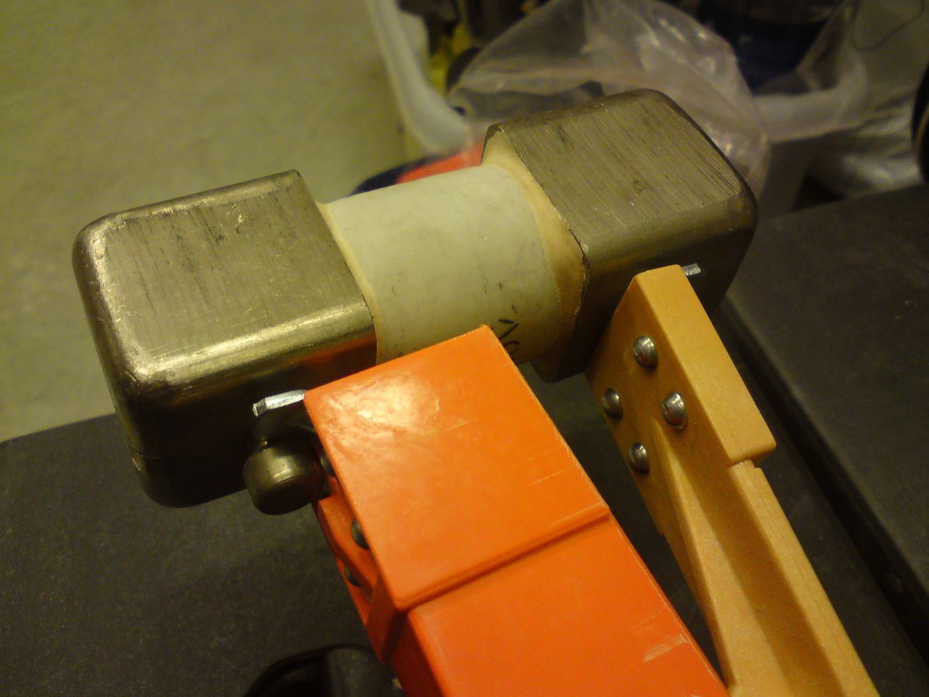 så här funkade det, vet ej om en plopp hoppade ur på undersidan när den löste ut, men måste vara svårt att se. Det var nog mätning som gällde. Handtaget gav inte mycket skydd...