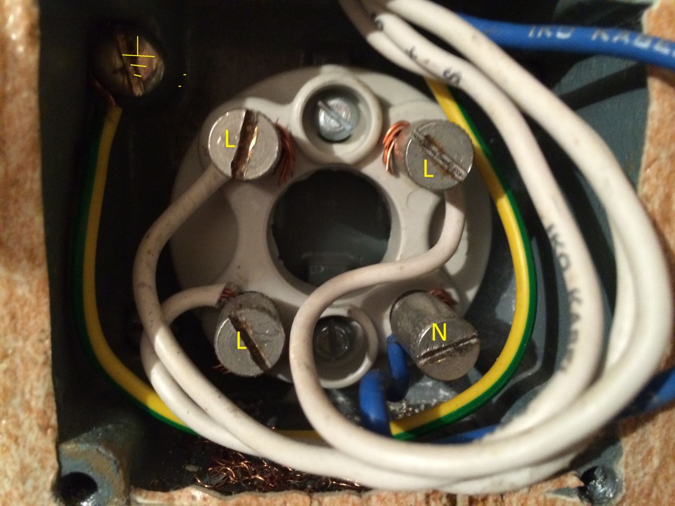 Avsikten är att koppla vit vit vit(faserna) i det befintliga uttaget(som varit tvättmaskin tidigare) till svart brun grå i EECuttaget, blå till blå, gröngul till gröngul i EECuttaget