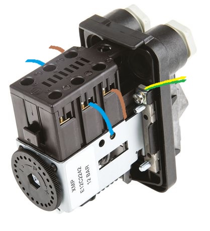 Jag antar att den ska mata en vattenpump eller kompressor med enfas asynkronmotor? Sådana motorer är ganska besvärliga induktiva laster som ger otrevliga överspänningar och ljusbågar då tryckströmbrytaren slår i från. Kontakterna håller mycket längre om man sätter lämpliga gnistsläckare (t ex varistorer och/eller RC-nät) parallellt med dem.