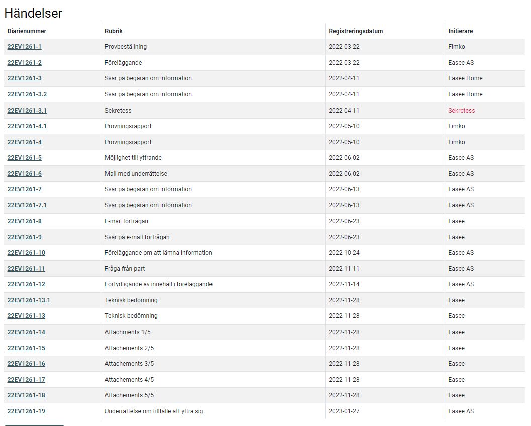 Elsäkerhetsverket verkar ha påbörjat granskningen av Easee Home för snart ett år sedan: