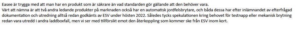 Tycker att Easee borde ha hunnit göra denna ändring i "deklareringen" då under ett års tid? (så länge som denna granskning har pågått.)