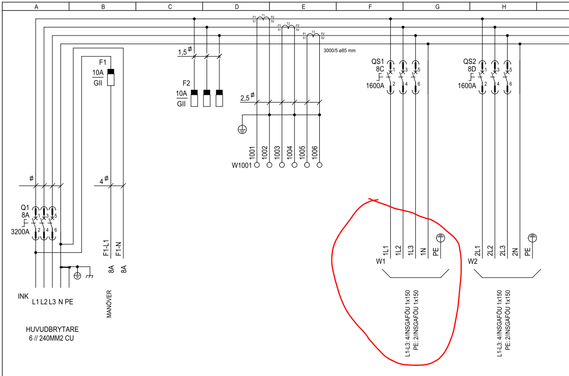 När slutar PEN benämningen, och när börjar PE benämningen? I och med att N-ledarskenan är ansluten, så har vi väl ett utgående TN-S system.Om man sen ansluter en PEN-ledare till den delen vi kallar för PE, tycker jag inte det ser bra ut.
