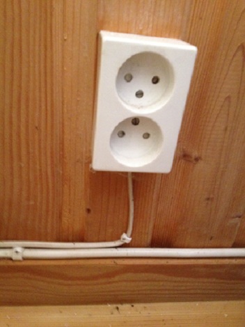 En Dosa med 2 st EKK som gick ut en som var klippt precis intill dosan och den andra låg 5m bort klippt och tejpad på undertaket. Nödljusskylt stod det på kablen. Bra att någon iaf märkt upp vad den var till.