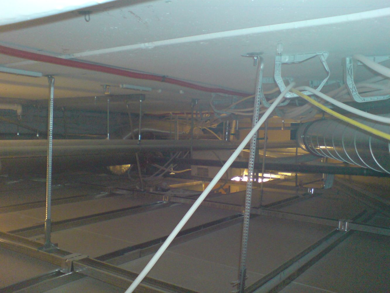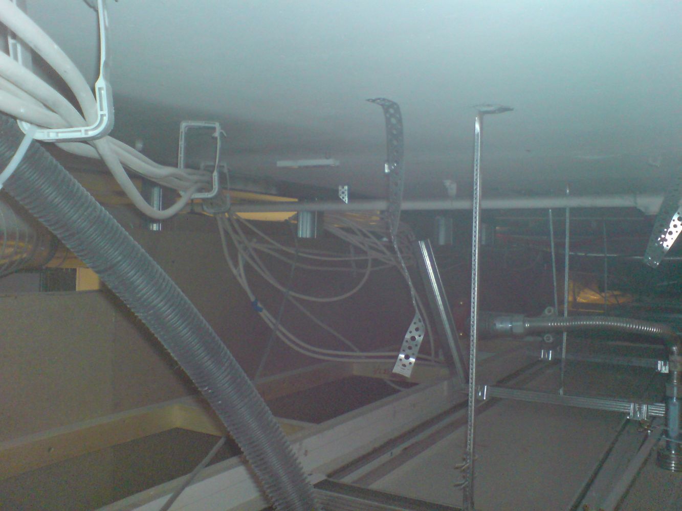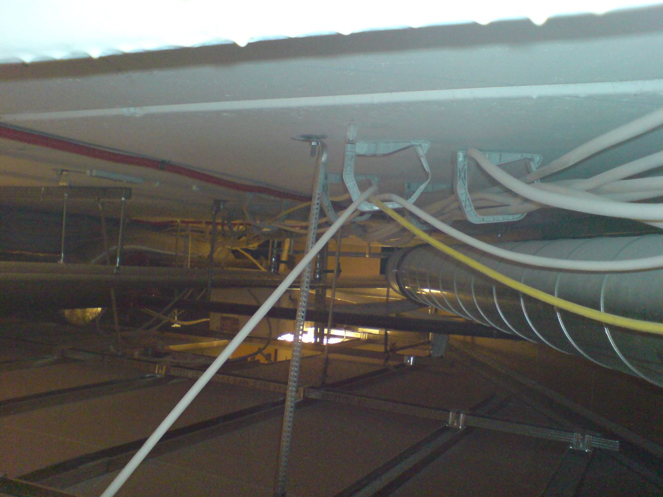 Rör och slangar som låg på undertaket och m eller mindre hängde i kablarna.