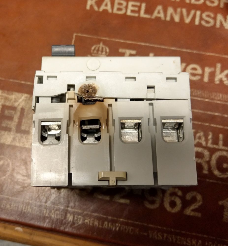 Dock såg jag att den gamla jordfelsbrytaren var bränd så jag bytte den (se bild.)
