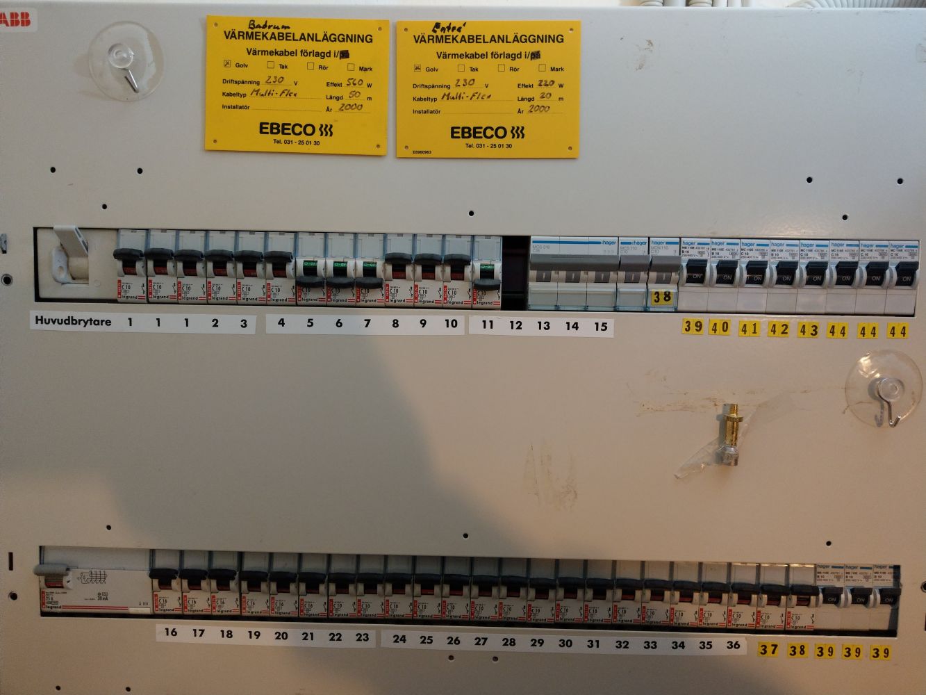 Centralen såg förövrigt inte speciellt imponerande ut med 3-fasskenor blandat med MK. Märkningen var också lite lustig. Lägg märke (pund intended) till hur många nr 39 det finns. Dessutom ligger spabadets 3-fasmatning på grupp 45.