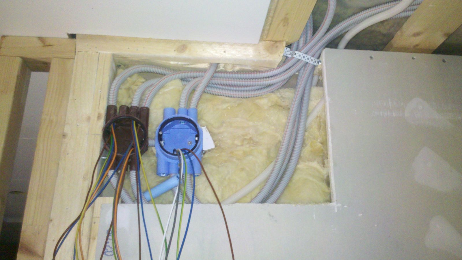 Vi har även rivit bort tre stycken takdosor och dragit ner till kopplingsdosor på vägg i stället.