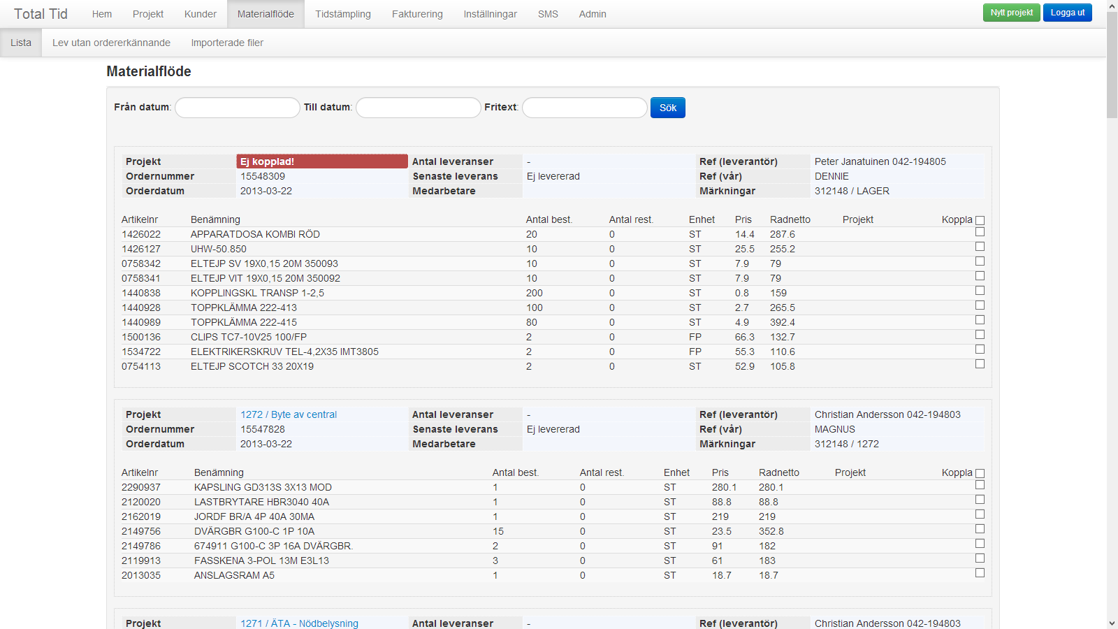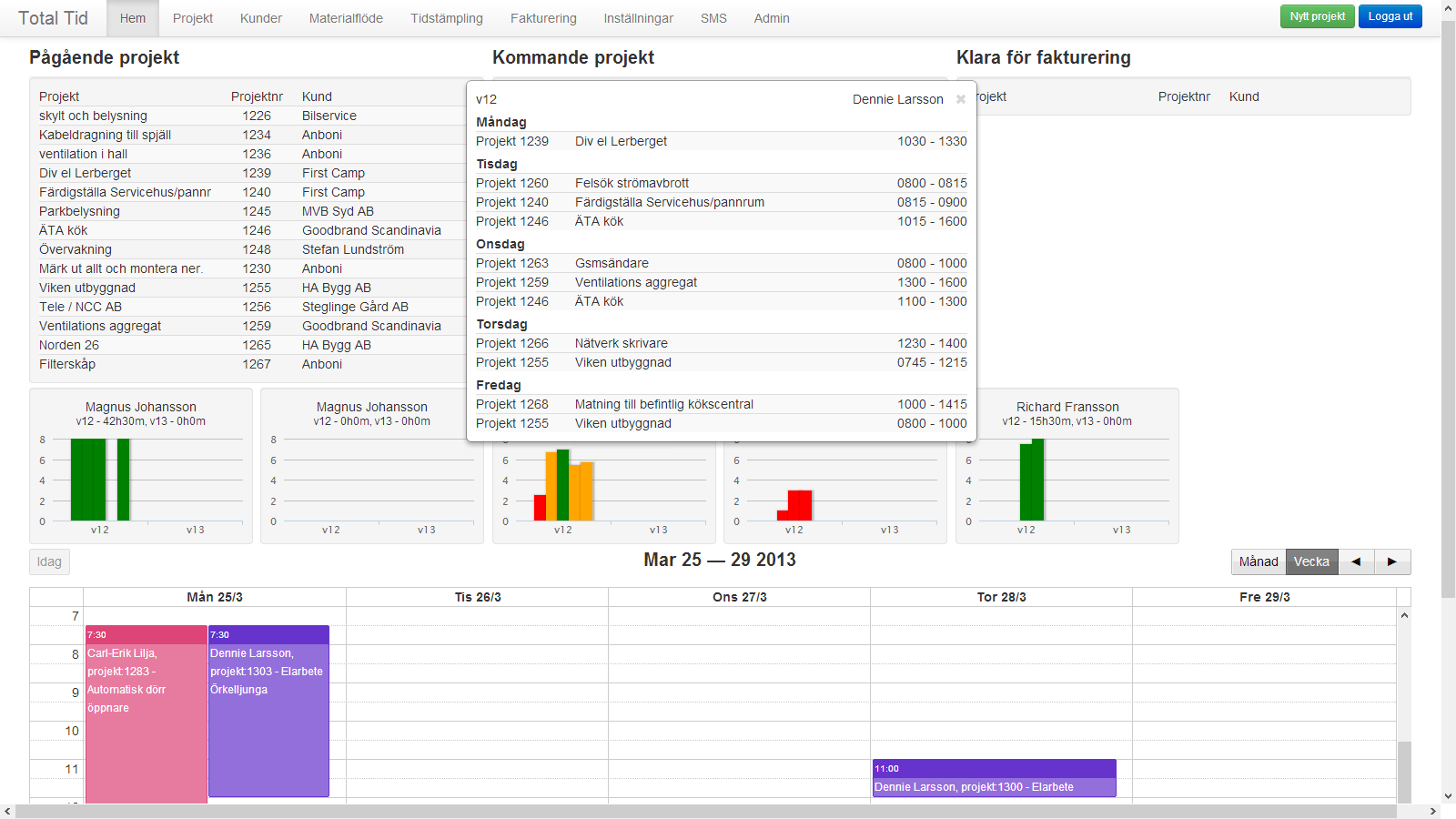 projekten. Slipp följesedlar eller otydliga tidsunderlag.