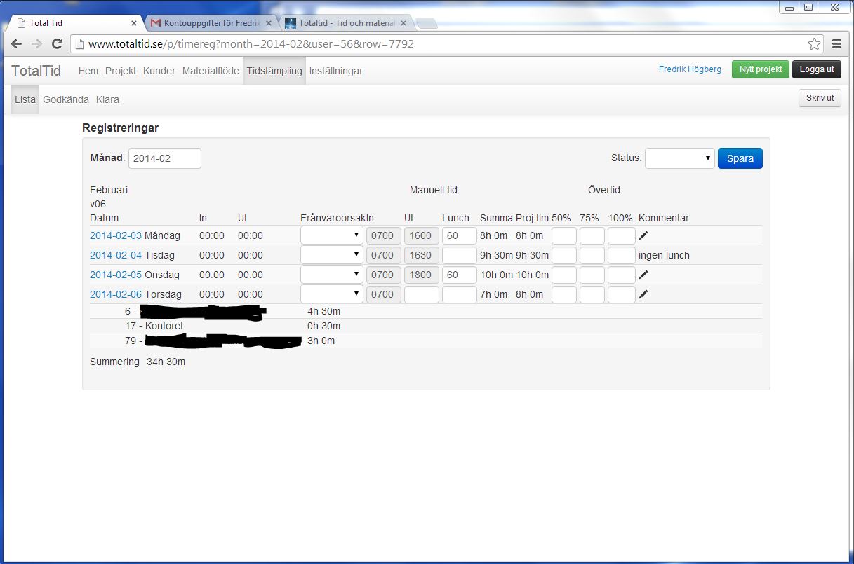 Kan ju helt ärligt säga att som montör och användare av detta program så gnällde jag på chefen tidigare om att jag tyckte det var krångligt med allt in/ut checkande så i början fyllde jag i tiden på en dator på kontoret på eftermiddan eller morgonen dagen efter eller nåt annat tillfälle som jag då hade glömt bort hälften av det jag gjort.