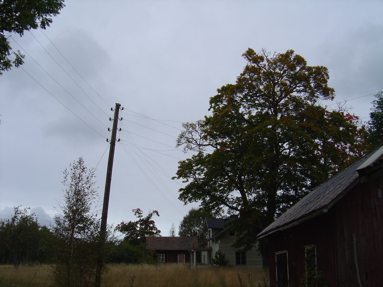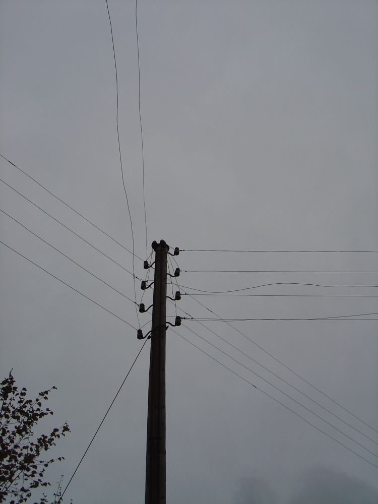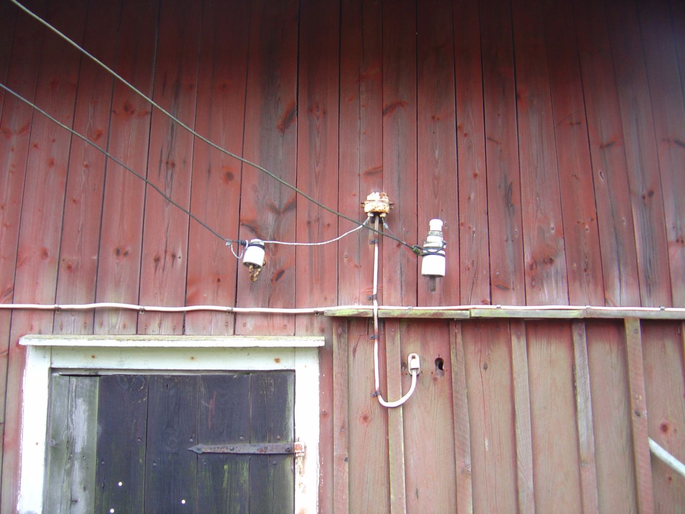 den här "öde" gården är lite märklig då det är lite förfallet och det ser inte ut att bo nån där, men det är spänning fram överallt, i alla trådar, halva ladugården har rasat ihop och där hänger avryckta spänningssatta trådar i det som en gång var taket, även 3-fasuttaget och säkringslådan på bild nedan har spänning, kollade med spänningsprovaren!