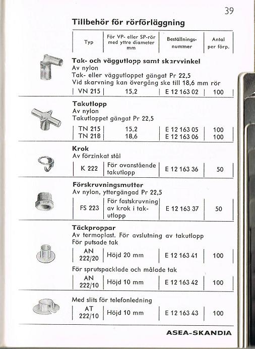 Per Wendt skrev: Det ni har hittat kallades tak-/ väggutlopp och fanns nog hela 60- och några år in på 70-talet (verkar ha utgått i E-Skandias mont.kat. 1978 i alla fall).