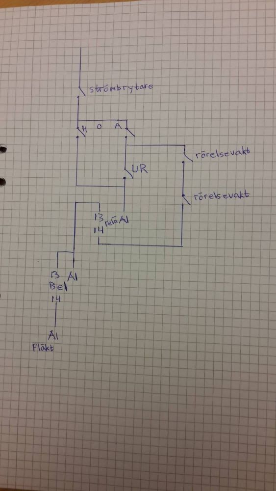 Henrik Eriksson skrev: Ja uret ska ju vara direkt till A1, men du får hämta styrfasen från hand 0 auto brytaren, är den i läge 0 så ska ju inget fungera, även om uret slår till. närvaro ska kopplas parallellt och till A1 samt hämta sin fas från brytaren.