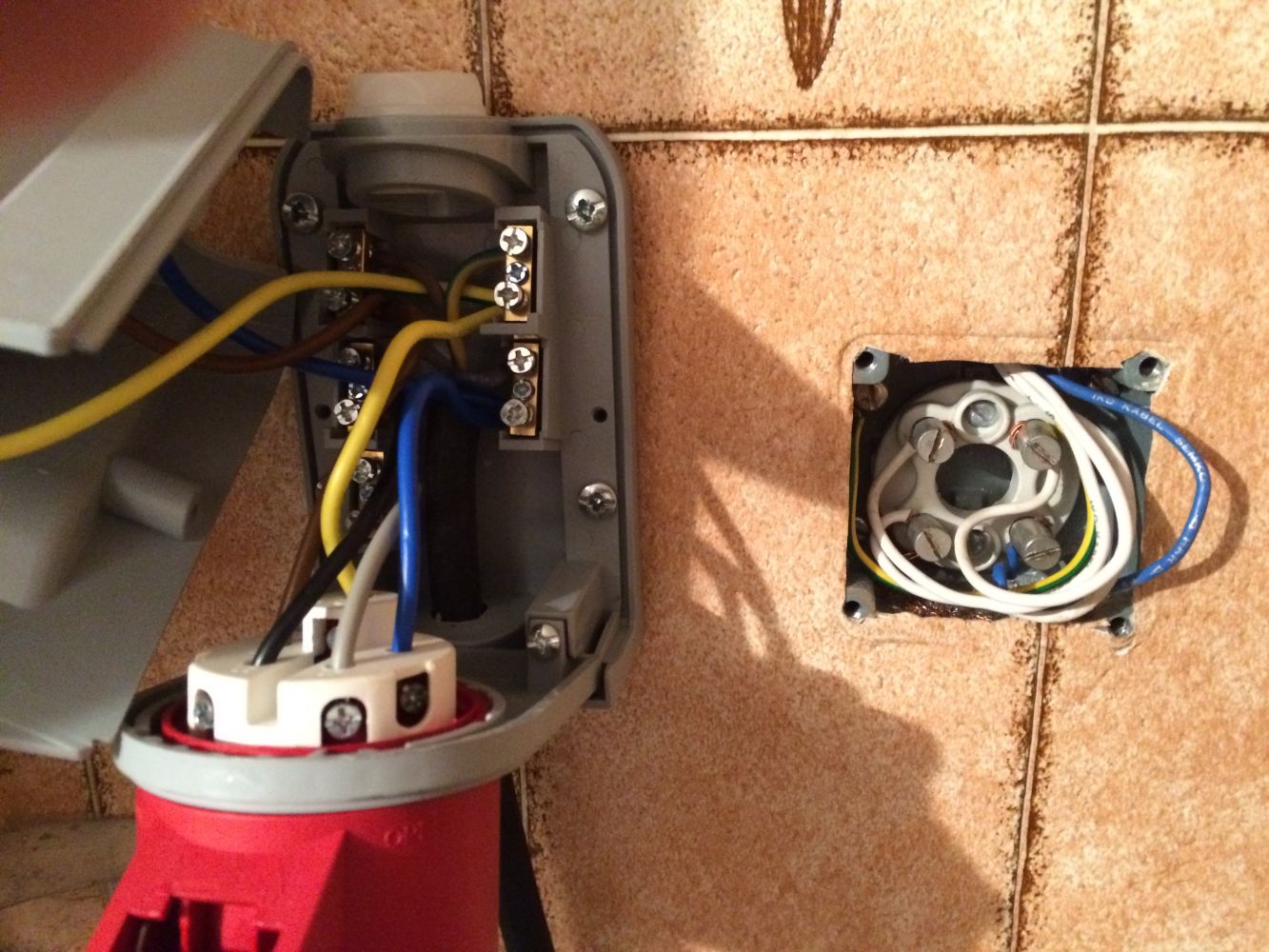 Avsikten är att koppla vit vit vit(faserna) i det befintliga uttaget(som varit tvättmaskin tidigare) till svart brun grå i EECuttaget, blå till blå, gröngul till gröngul i EECuttaget