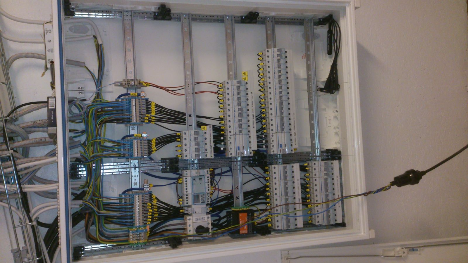 Hej alla.. Kanske måste förklara att det vänstra "dinskenpaketet" inte var förbundet med det högra.. Om ni tittar på nedersta bilden så ser ni jordslackan som vi monterat. Förövrigt så har jag provningsprotokoll på centralen som säger att den är o.k:angry: Vet inte hur ni förklarar detta men på Rimeda men jag kan bifoga provningsprotokollet så kan ni få fundera på detta!!