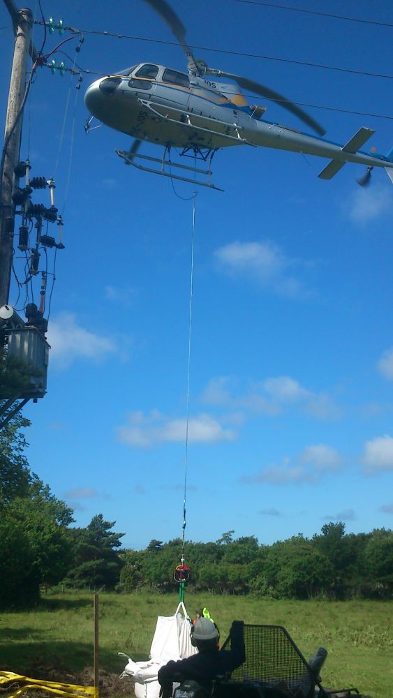 Fick bara filmat när de flög ut sandsäckarna, vid själva flytten av station och trafo så hjälpte jag till att "sätta ut" dem, så det var lite svårt att filma..