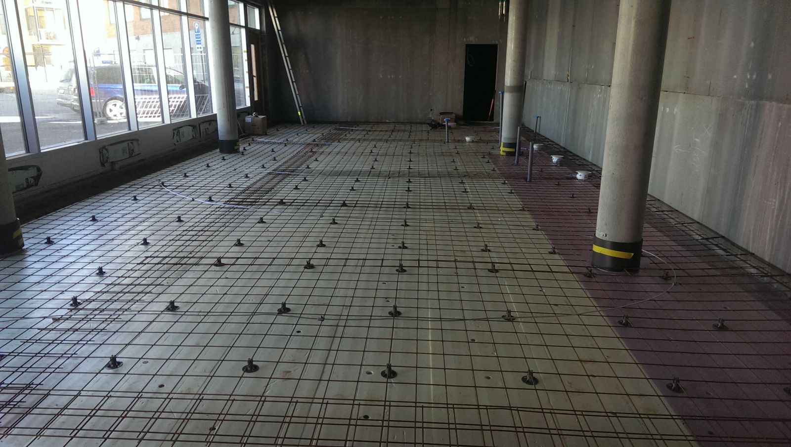 Maskiner kanske monteras med expander som får kontakt med armeringen, på en annan plats så kanske en stålpelare har monterats med expander som har kontakt med armeringen....