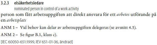 ...Innan ett arbete påbörjas samt medan det pågår ska elsäkerhetsledaren säkerställa att alla tillämpliga fordringar, regler och anvisningar uppfylls.