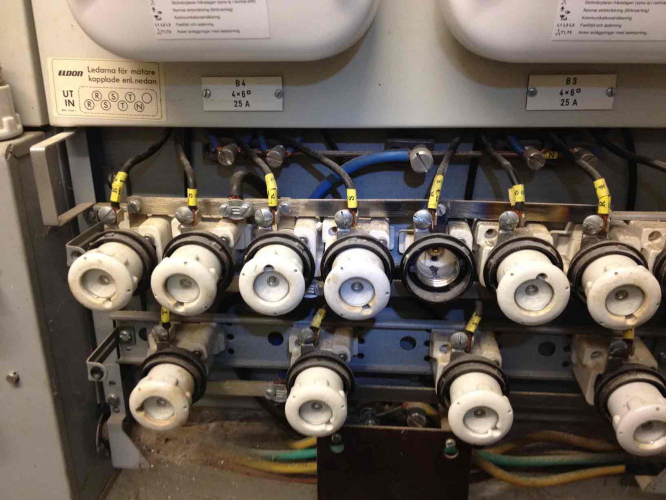 River väl sådana lite då och då. Men denna typ av fasskena är inte bra! Det är vanligt med varmgång i skruvarna där som förbinder säkringselementen med skenan. Var på ett ställe en gång där det bara var tur att inte hela huset brann ner pga detta.