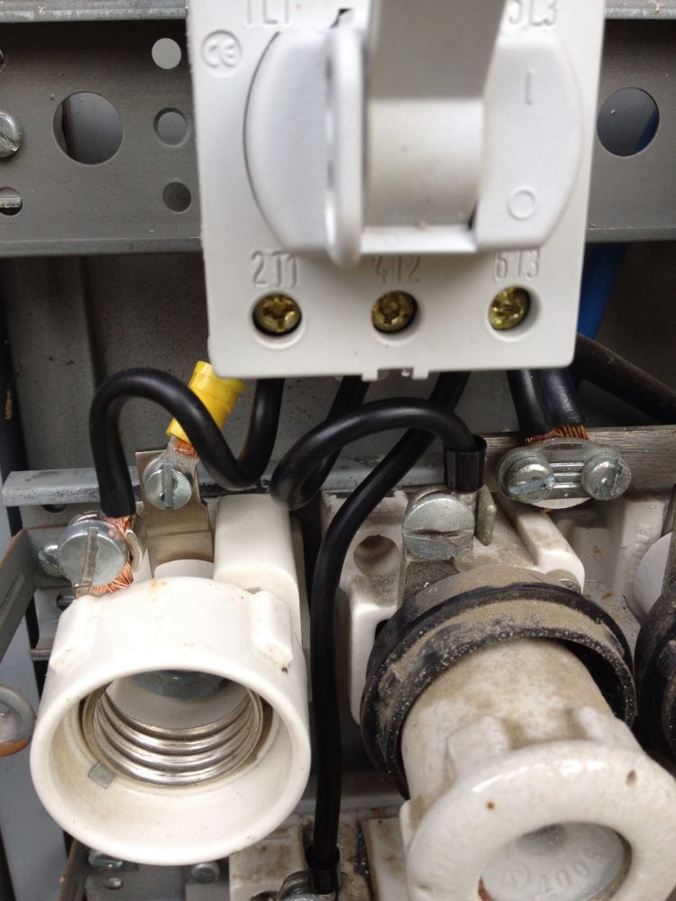 Så nu till min fråga, finns det någon av er som har en fasskena till L1 (den övre i bilden), samt två säkringssocklar där både inkommande och utgående skruv är uppåt.