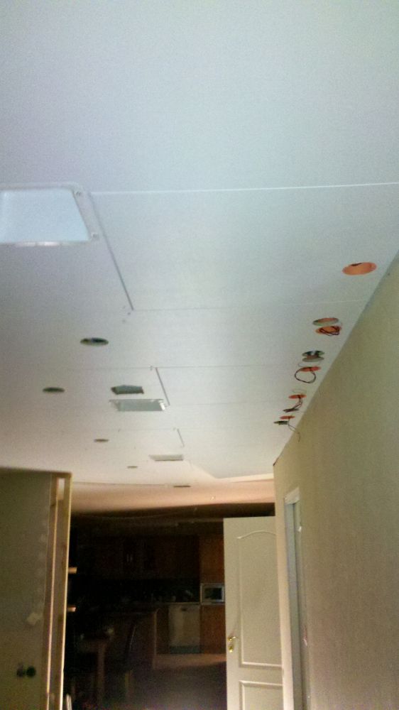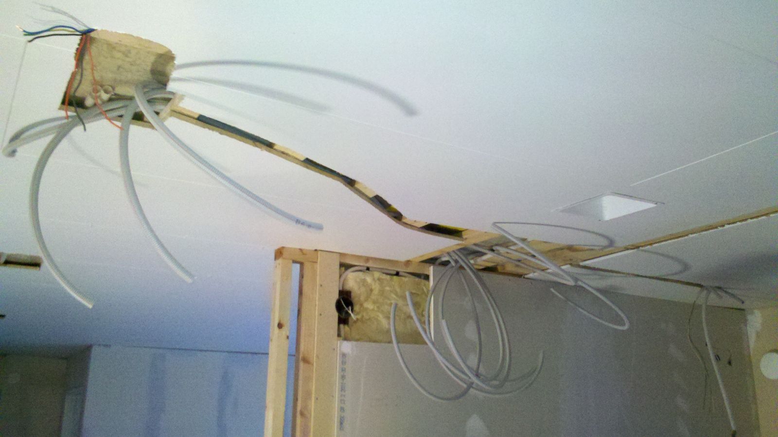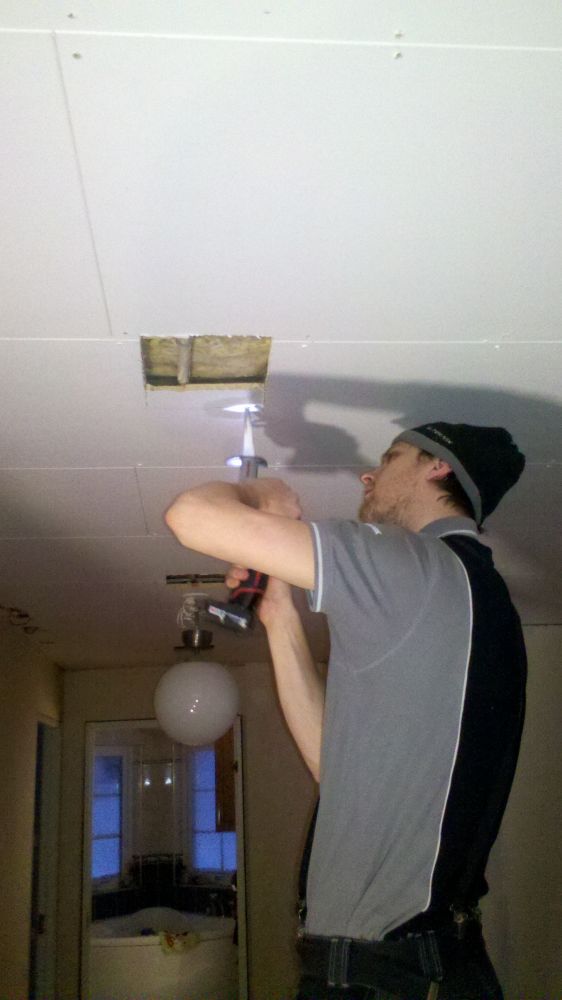Vi har även rivit bort tre stycken takdosor och dragit ner till kopplingsdosor på vägg i stället.